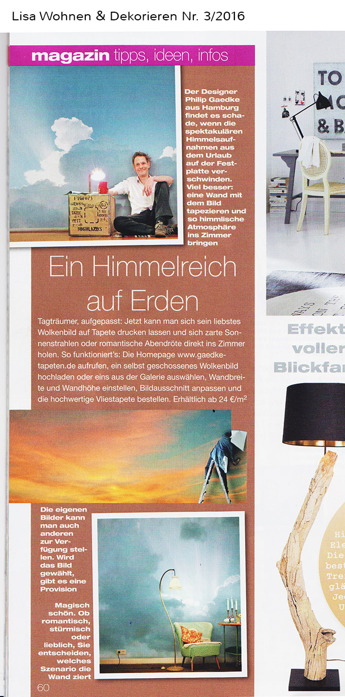 Unsere Aktion "Wolken Tapeten" findet ausführlich Erwähnung im Magazin-Teil "tipps, ideen, infos". Vielen Dank!