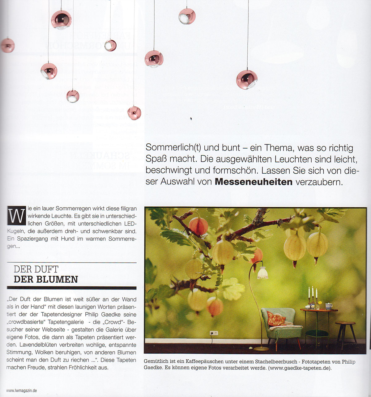 Kleines Portrait über Tapetendesigner Philip Gaedke im Kundenmagazin der Firma Beisner Druck, einer der ganz großen Druckdienstleister in Deutschland.