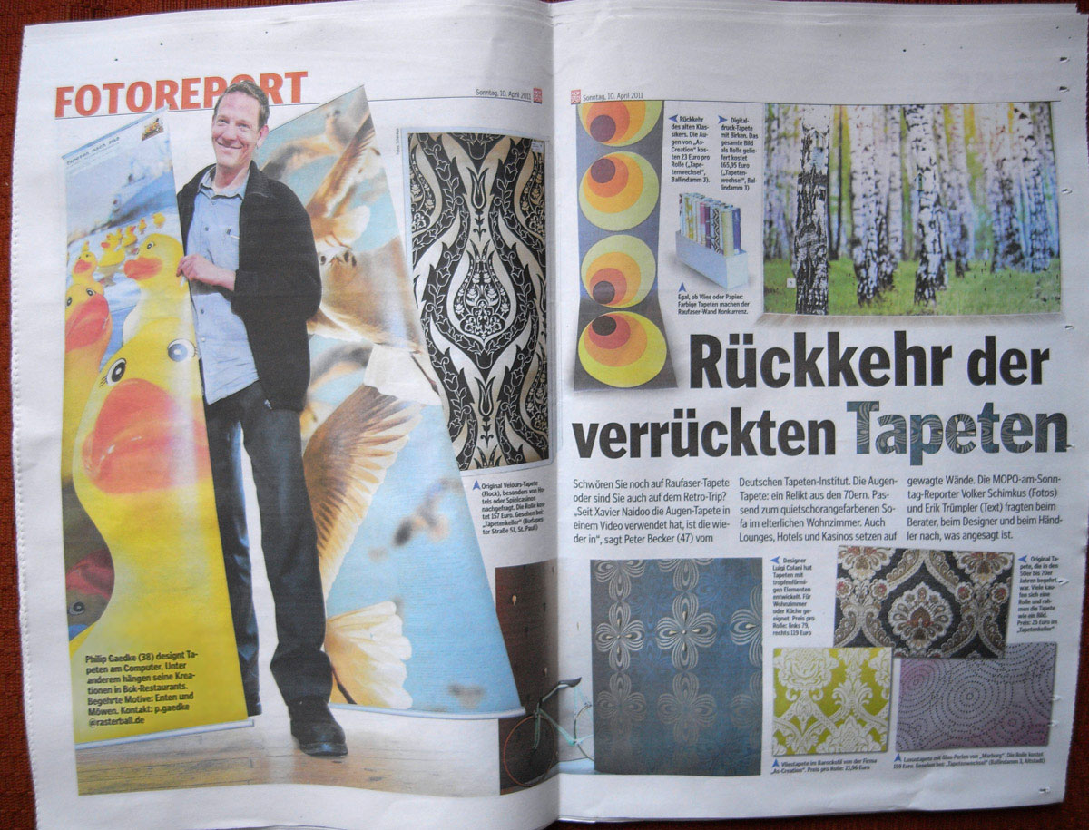 "Philip Gaedke (38) designt Tapeten am Computer. Unter anderem hängen seine Kreationen in Bok-Restaurants. Begehrte Motive: Enten und Möwen"
